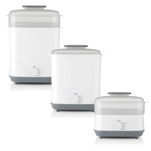 Steriliseert tot 11 flessen én spenen tegelijk in slechts 12 minuten. Geschikt voor standaard- en brede halsflessen, evenals accessoires zoals speentjes, lepels en tuitbekers.Drie programma's voor flexibiliteit