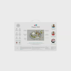Bovendien is de Happy Mat zeer praktisch in gebruik. Het heeft een ingebouwd bordje waardoor er geen extra borden nodig zijn. Het bordje is verdeeld in verschillende secties, wat ideaal is voor het scheiden van voedsel voor kieskeurige eters en het helpt baby's en peuters zelf te leren eten.