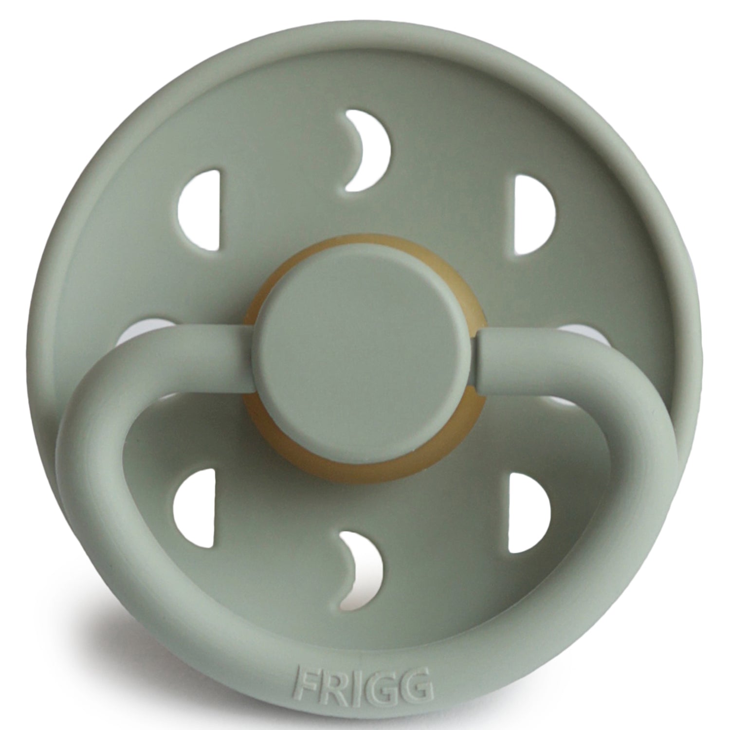 De maan in beweging als inspiratie voor een prachtige fopspeen van natuurrubber, vervaardigd in Denemarken. De FRIGG Moon herken je meteen aan het leuke schildje met de veranderende maanstanden.