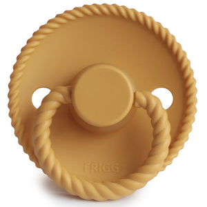 FRIGG Rope is een prachtige fopspeen van natuurrubber, vervaardigd in Denemarken. Onderscheidend herkenbaar aan de inspiratie op scheepstouw: rondom het schildje van de speen en als handgreep van de speen.