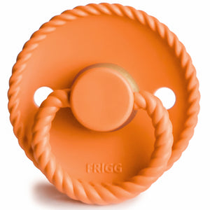FRIGG Rope is een prachtige fopspeen van natuurrubber, vervaardigd in Denemarken. Onderscheidend herkenbaar aan de inspiratie op scheepstouw: rondom het schildje van de speen en als handgreep van de speen.