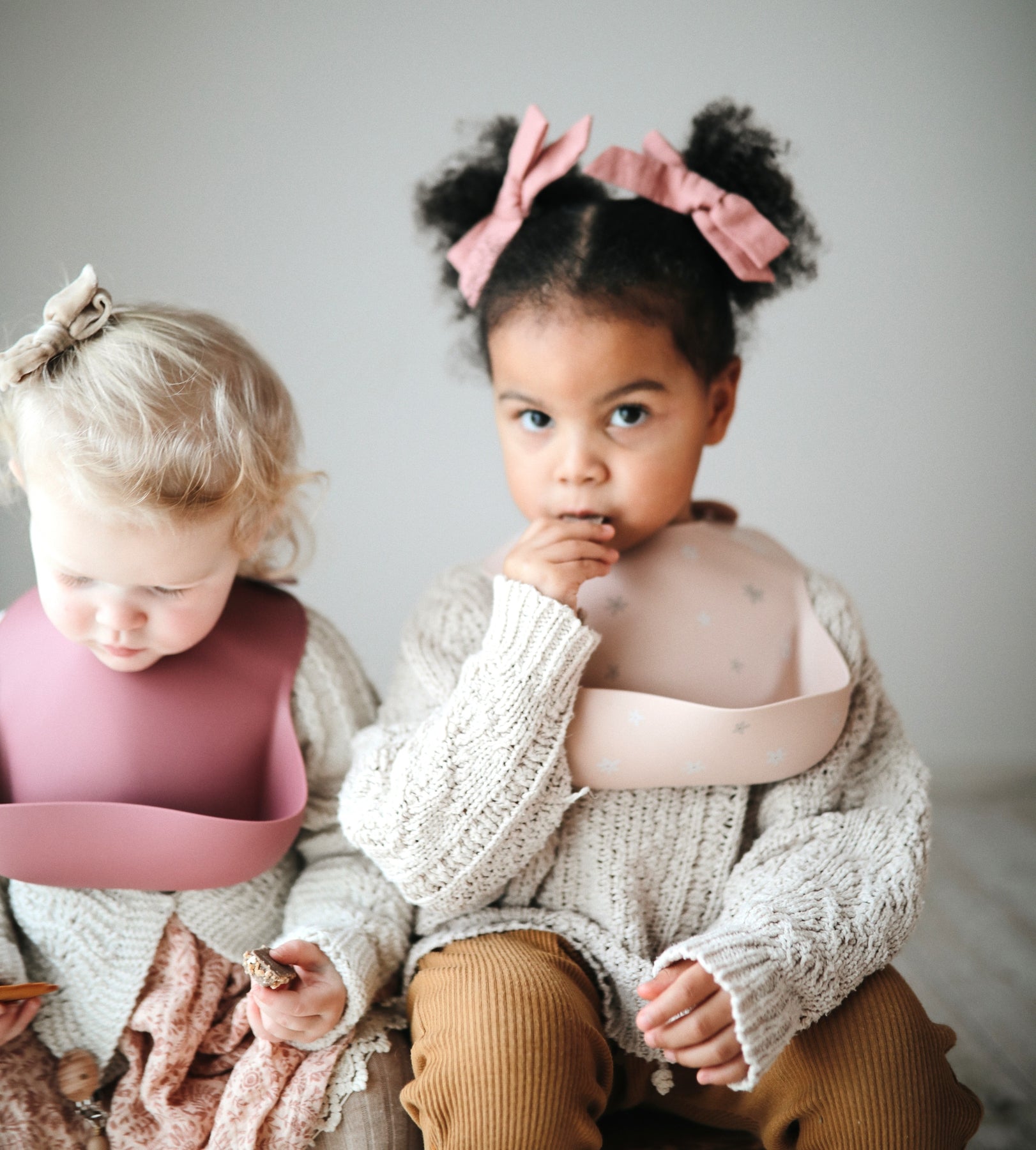 De mooie, trendy siliconen slabbetjes van Mushie zijn superhandig. Knoeien hoort erbij en mag gewoon. Met de zachte, verstelbare siliconen slabbetjes van Mushie kan jouw kleintje lekker zelfstandig oefenen met eten.