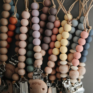 Mushie-speenkoorden combineren perfect met spenen van BIBS en FRIGG. Een prachtige aanvulling op de garderobe van jouw baby.